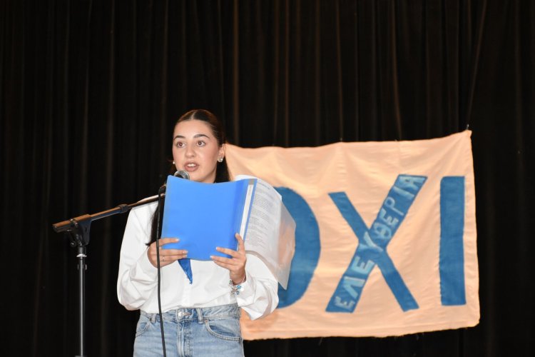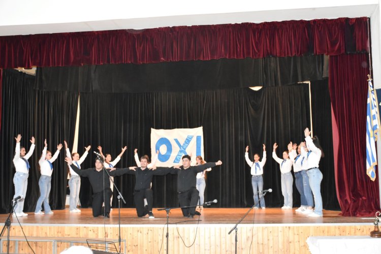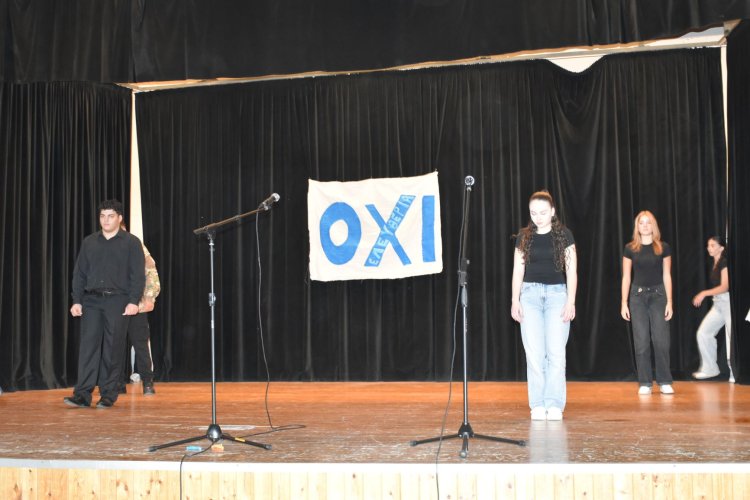 Ακολούθησε το κυρίως μέρος του εορτασμού με το αφιέρωμα με τίτλο «Μια μέρα η λευτεριά θα νικήσει τον πόλεμο», όπου οι μαθητές και οι μαθήτριες παρουσίασαν ποιήματα, αφηγήσεις, θεατρικά δρώμενα, χορούς και τραγούδια, αποδίδοντας με ευαισθησία και σεβασμό τα μηνύματα του αγώνα του 1940.