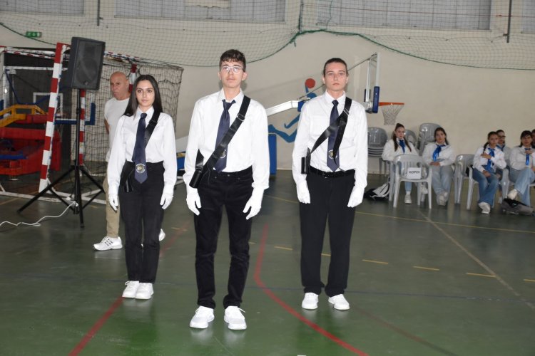 Στο πρώτο μέρος της εκδήλωσης μέσα σε κλίμα συγκίνησης και περηφάνειας πραγματοποιήθηκε η Ανακήρυξη των Σημαιοφόρων και Παραστατών του Σχολείου για τη φετινή σχολική χρονιά και η παράδοση του Λαβάρου και των Σημαιών στους πρωτεύσαντες μαθητές.